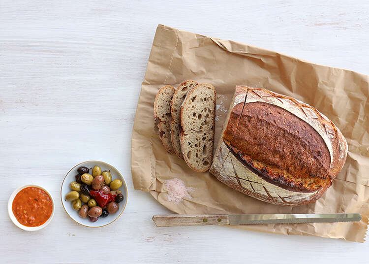 לחם מחמצת חמישה דגנים עם קמח מלא