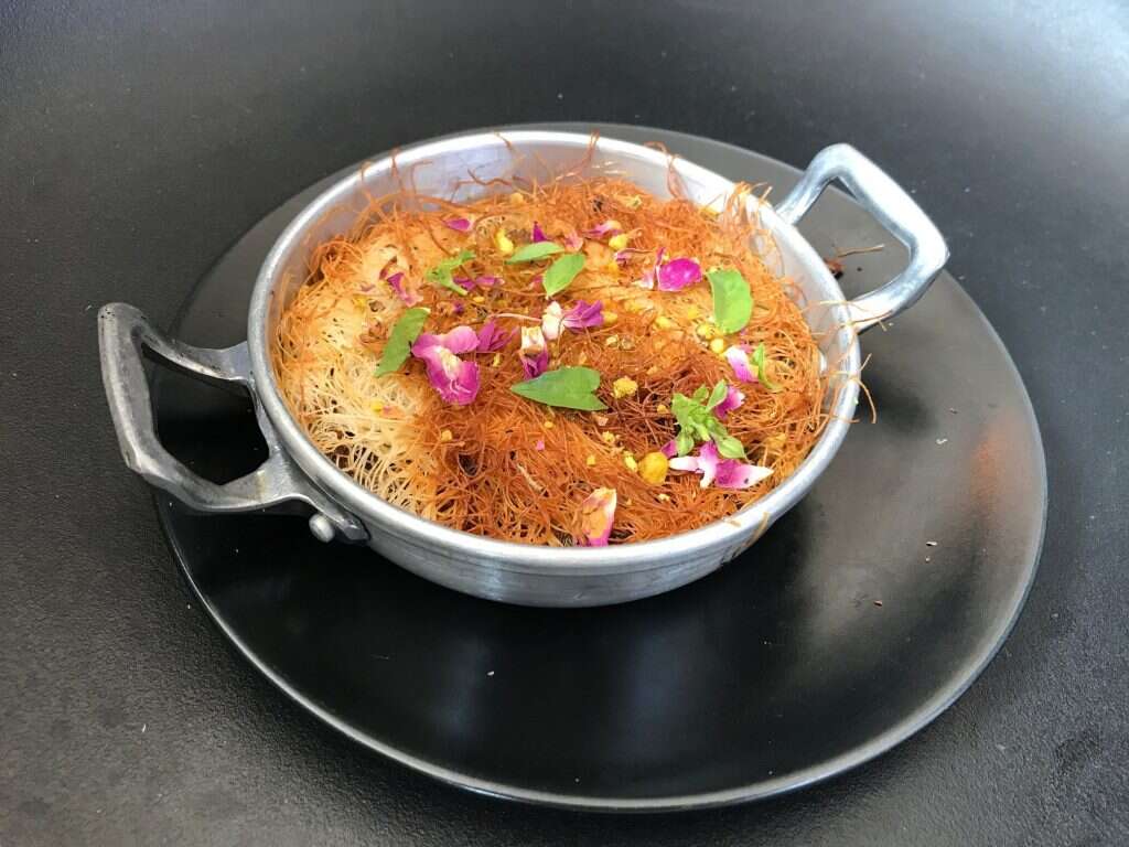 העיקריות היו כבר סיפור אחר. בחרנו בשתי מנות שעל הנייר נשמעו סופר־מעניינות – כנאפה עם בקר וסופריטו עגל, ערמונים וארטישוק ירושלמי. לכאורה, בדיוק החומרים שמהם אפשר לפרק ולהרכיב מחדש מנות מרתקות. אז הרעיון אמנם מצוין, הביצוע – פחות. בכנאפה, הבשר שהסתתר מתחת לשערות הקדאיף לא היה עסיסי מספיק וגם לא צוות לו רוטב דומיננטי דיו שיחליף את הגבינה החמימה וסירופ הסוכר מהמנה המקורית. למרות התיבול המוצלח, התוצאה הייתה ביס יבש ומאכזב.