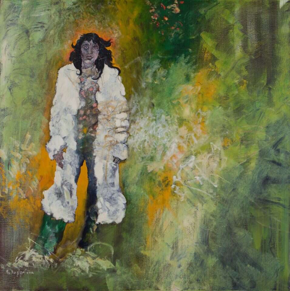 רוחה של אישה מתה שניסתה כל חייה לאזן בין צבעי השחור והלבן. אורי ליפשיץ, "יסמין", 1975 . צילום: אביתר הרשטיק. מתוך התערוכה "דיוקן משפחתי" שהוצגה בגלריה גורדון, תל־אביב