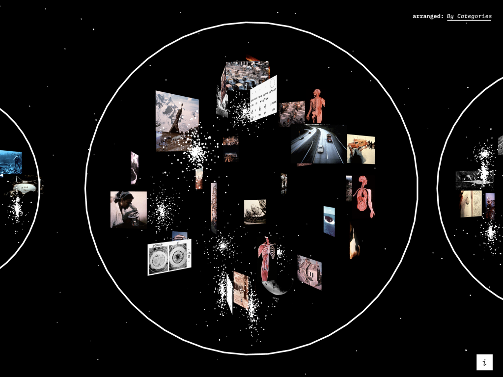 "חשבתי על כך רבות במהלך העבודה. ניסיתי ליצור כמה גוונים של 'טיול'. למי שלא מכיר בכלל, רציתי לאפשר שיטוט כרונולוגי – כאילו אני שׂם את המחט בתחילת התקליט ופשוט מאזין לו וצופה בו מההתחלה עד הסוף. הדבר הזה לוקח כשעתיים. מצד שני, היה לי חשוב ליצור אפשרות לשיטוט חופשי של דברים ספציפיים שמסקרנים את המשתמש. ויש מסלול שלישי, של חלוקה לקטגוריות מעבר לדיכוטומיה של מוזיקה ותמונות: תרבות מערבית ולא מערבית, חברה, הגוף האנושי וכדומה. החלוקה לקטגוריות והמידע שנמצא שם מאפשרים לצופה הביקורתי לשאול שאלות כמו מה אפשר להבין היום ממה שקודד אז, איפה נמצאת האחריות החברתית שלנו, איזו עמדה האלבום הזה נוקט – כי הרי גם בחוסר פוליטיקה יש פוליטיקה. שאפתי להיות אובייקטיבי. לתת את המידע, ושכל צופה יוכל לקחת ממנו מה שהוא רוצה".
