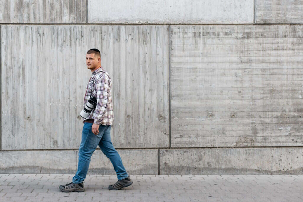 גולדברג בן 27, נשוי, תושב ירושלים. הוא נולד וגדל בכרמיאל. "המשפחה שלי חרדית, אבל אני קורא לעצמי יהודי", הוא אומר. "אני תמיד אומר לאשתי: מי קובע מיהו חרדי? המשפחה שלי מקיימת אורח חיים חרדי, אבל אני לא רואה איזה הבדל ביני ובינך. כשאני הולך לצלם חרדים אני חרדי, וכשאני הולך לצלם ביהודה ושומרון אני יהודי".