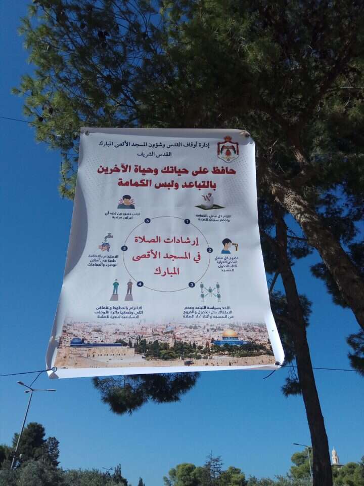 ממשטרת ישראל נמסר: משטרת ישראל פועלת על פי הנחיות הדרג המדיני, שטח הר הבית כולל 140 דונם, במסגרת פעילות ההסברה לציבור הופצו ופורסמו הנחיות למען שמירת בריאות לציבור המתפללים המגיעים למקום והכל במסגרת המאבק בנגיף.