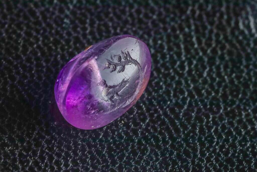 במאמר מדעי שצפוי להתפרסם בקרוב מבקשים החוקרים אלי שוקרון, פרופ' שוע אמוראי-שטרק ומלכה הרשקוביץ שחקרו את הממצא, לאפיין את החריתה שעל גבי החותם. לדברי החוקרים, על האבן היקרה מופיעות חריתות של שני אלמנטים, אחד ליד השני. האלמנט הראשון מציג ציפור, ככל הנראה יונה, ולידה מופיע ענף עבה ארוך ומעוגל ועליו חמישה פירות. לאחר בחינה של הממצא, החוקרים סוברים כי הצמח המופיע על האבן הוא צמח בושם האפרסמון, המוזכר במקרא, בתלמוד ובמקורות ההיסטוריים.