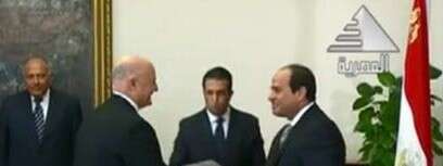 דוד גוברין מגיש כתב האמנה לנשיא מצרים