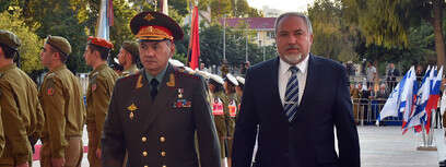 ליברמן ושר ההגנה הרוסי, סרגיי שויגו, במסדר כבוד בקריה