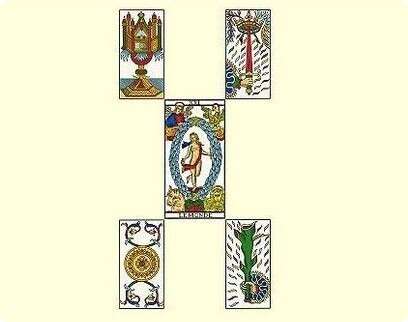 הפריסה הבאה היא מודל תחומי החיים של הטארוט. בארבע הפינות נמצאים קלפי האס של ארבע הסדרות המשניות: המטבע (גוף), המטה (יצר), הגביע (רגש) והחרב (שכל). במרכז מופיע קלף העולם, שהדמות העירומה במרכזו מייצגת את ההוויה האנושית השלמה.