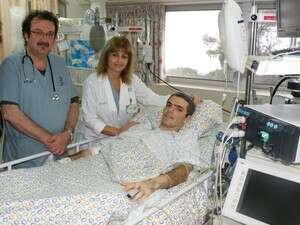צחי ראומי עם האחות זיוה ששתיאל, אביו חיים וד"ר רמוס הרשקוביץ צילום: בית החולים כרמל