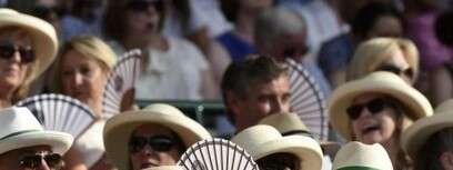 צופי טורניר ווימבלדון עם כובעים ומניפות. היו משחקים מכורים?