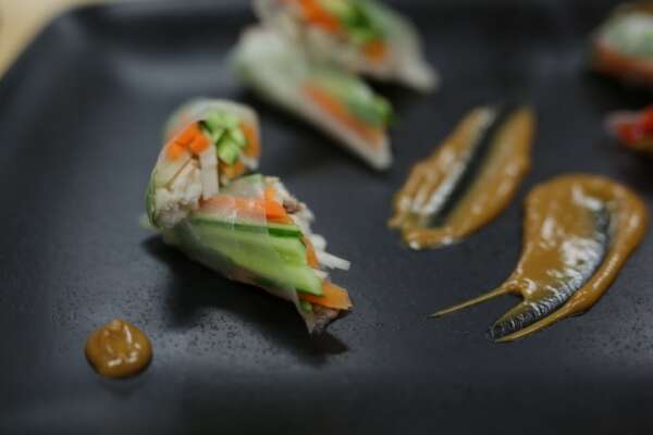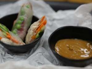 דפי אורז במילוי עוף עם דיפינג חמאת בוטנים וסויה