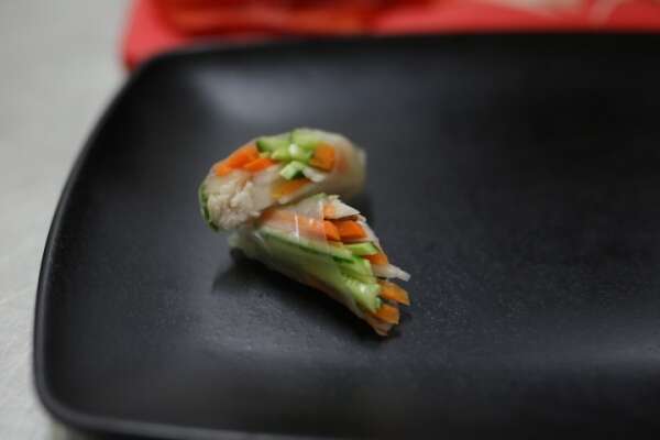 את דפי האורז מפרידים ומרטיבים במים פושרים למשך 10 שניות, ולאחר מכן מניחים על מגבת. על כל דף אורז מניחים מערום ירקות חתוכים שלא זולגים מחוץ לנייר. את הנייר מגלגלים עד למרכזו ומכניסים את הקצוות פנימה. ממשיכים לגלגל עד לקבלת צורה עגולה אחידה