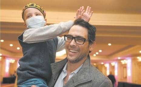 אמיר פרישר גוטמן עם הילד חולה הסרטן אליאב כהן, באירוע של ''עזרה למרפא''