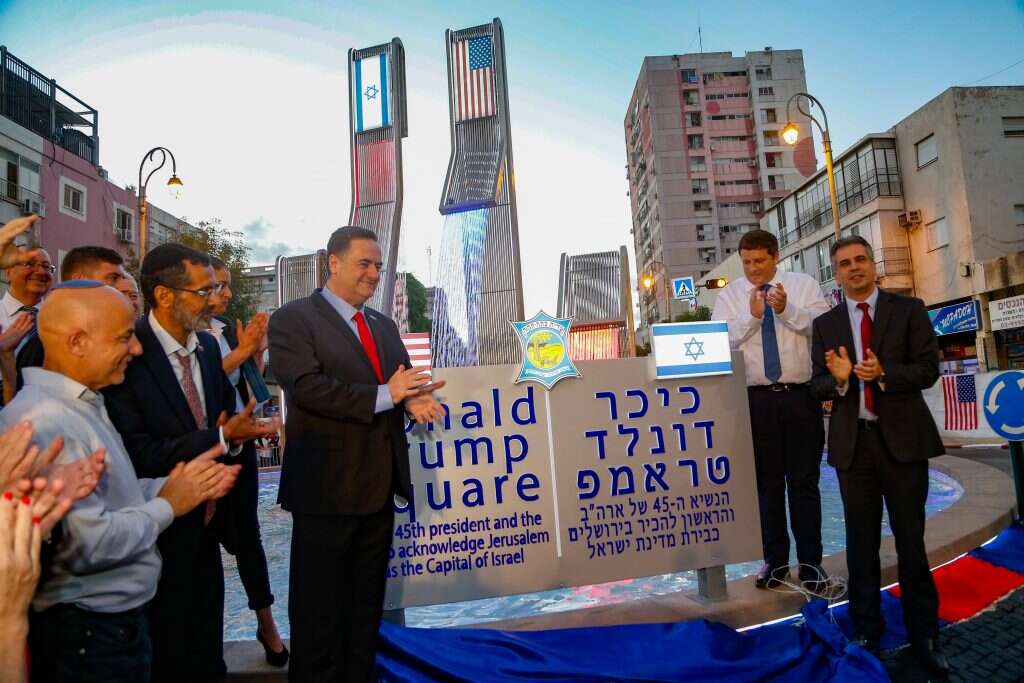 מי כן כיבד בנוכחותו את האירוע? שר החוץ ישראל כץ מהליכוד, ושר הכלכלה אלי כהן ממפלגת כולנו, שמוזגה גם היא עם הליכוד. ראש העיר, רמי גרינברג, המזוהה עם הליכוד עוד מהיותו נער, פורע כאן ביג־טיים את שטרות ההיכרות העמוקה עם צמרת מפלגת השלטון ומצליח להביא לטקס המוזר שני שרים בכירים. מבחינתו זה מהלך של שח־מט: כיכר טראמפ הוא שם שמושך תקשורת ופרסום; חוץ משני שלטים עם פונט מזעזע, הסבת שם הכיכר לא עולה ממון רב לקופת העירייה; ולתזמורת הנוער העירונית יש סוף־סוף אירוע שבו יכולים נגניה להפגין את יכולותיהם.