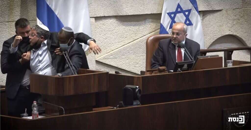 בן־גביר מורד בכוח מדוכן המליאה, צילום מסך ערוץ הכנסת