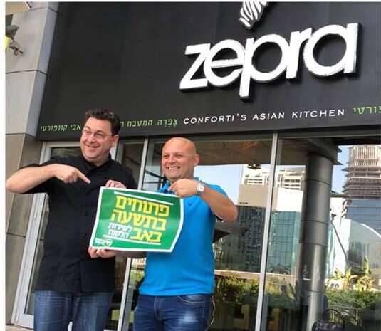 ראובן לדיאנסקי (מימין) והקמפיין לפתיחת מסעדות בתשעה באב. צילום: חילונים ירוקים