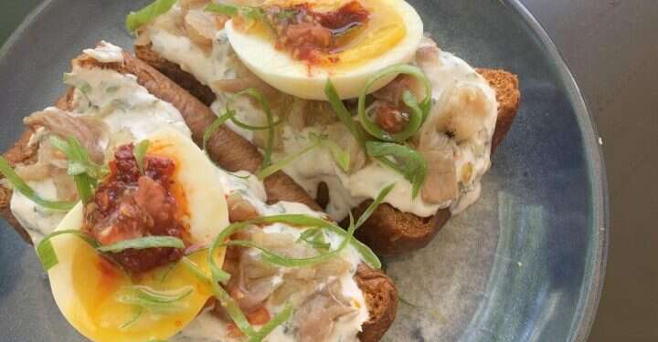 מתוך תפריט ההרצה בחרנו שתי מנות בראנץ' מובהקות – בנדיקט קלאסי והרינג שמרינג, שתיהן מוגשות בליווי סלט ירקות טרי. הבנדיקט דווקא לא היה כל כך קלאסי שכן במקום ביצה עלומה הוא הוגש עם חביתת עין, "שזו הגרסה הצרפתית המקורית" חידשה לנו המלצרית. ביצי העין הונחו מעל פרוסת חלת בריוש שמנמנה, עם גבינת גאודה, סלמון מעושן ורוטב הולנדייז. המנה הייתה נדיבה בגודלה אך למרבה ההפתעה דווקא פרוסת הבריוש – מוצר הדגל של המקום – לא הייתה טרייה דיה, ולפחות לטעמנו יש סיבה שגרסת הביצה העלומה היא זו שכבשה את העולם.