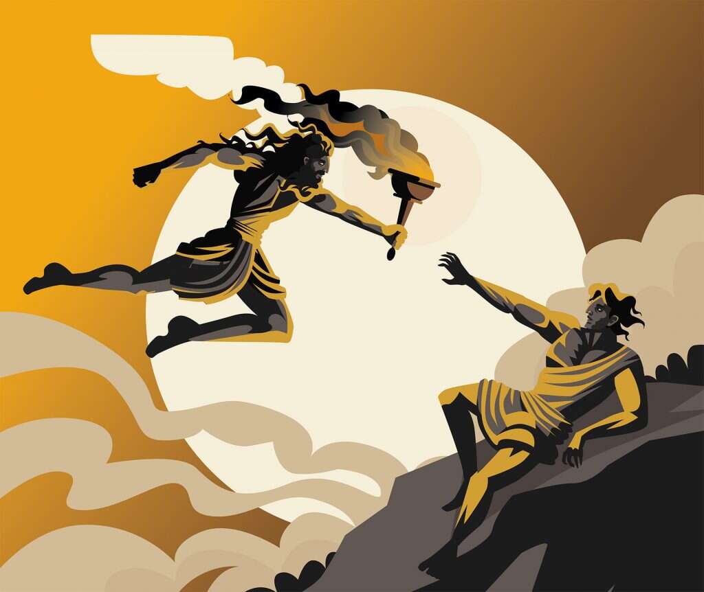 כדי להבין את המערב לעומק, טוען כהנא, יש להתבונן היטב בסיפורי המיתולוגיה היוונית, ולהתמקד במיוחד במאבק הניטש בין שני ארכיטיפים יסודיים החוצים את ההיסטוריה של המערב כולו: המאבק שבין זאוס לפרומתאוס. זאוס, אב עריץ, בכיר אלי האולימפוס, מייצג את השאיפה לסדר ויציבות, שאותם הוא אוכף גם בכוחניות מופלגת ולעיתים אף גחמנית כלפי בני התמותה. לעומתו פרומתאוס, דמות אידיאליסטית ואנטי־כוחנית, אינו מוכן שהטוב והחוכמה יישארו בשמיים, ובניגוד לצו מפורש של זאוס מוריד את האש השמיימית לרשות בני האדם. הללו, שלפני פרומתאוס היו נבערים וחסרי יוזמה, הופכים אחר מעשהו לסקרנים ובעלי תעוזה מחשבתית.