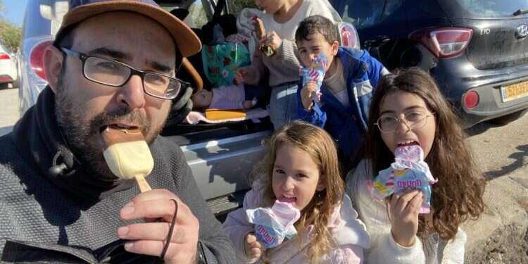 הנסיעה בשני רכבים אולי עלתה לנו בדלק ובקילומטרז', אבל היא נטרלה מראש את הריב של הגדולים מי יושב מקדימה, או במילים אחרות, מי הדיג'יי של הנסיעה. ההסכם היה שכל אחד בתורו בוחר שיר, כך שהפלייליסט בדרך כלל היה: שיר לועזי עכשווי שמככב בטיקטוק לפי בחירתה של הבת הגדולה, שיר ישראלי ישן מהתקופה שאני הייתי בגיל של הגדולה שלי, לאחר מכן שיר חסידי שהפך להיות הצלצול בבית הספר הממלכתי־דתי של האמצעית, ולבסוף הקטנים שמכירים רק שלושה שירים שאינם שירי פעוטות, ופשוט חזרו עליהם כל הזמן.