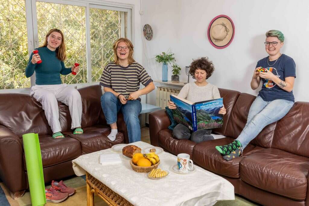 ההיכרות: אנחנו חבורת אידיאליסטיות! הגענו לארץ להתנדב בהוסטלים ובדירות לאנשים עם מוגבלויות שונות בעמותת אקים ירושלים. אנחנו תומכות בדיירים ומסייעות במה שניתן.