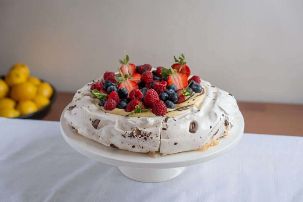 12. עורמים פירות מעל הפבלובה ומגישים.