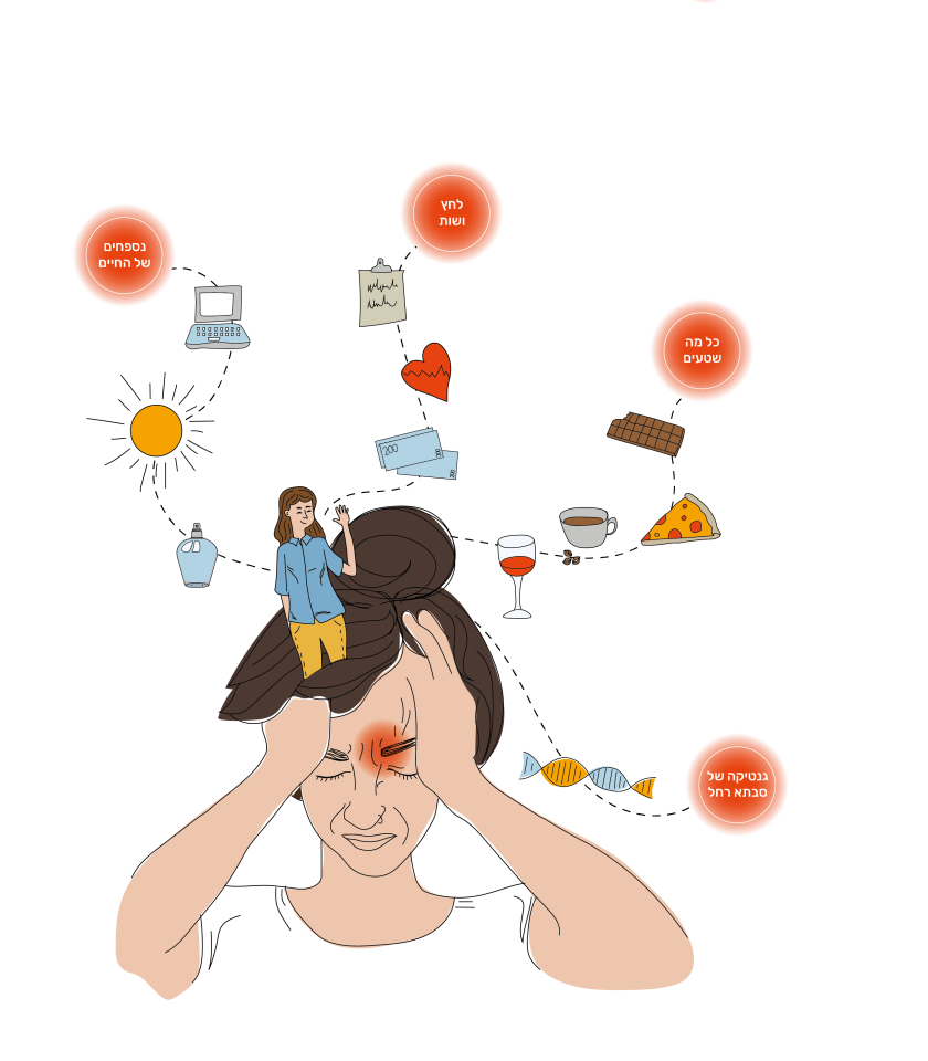 פעם הלכתי לנוירולוגית שהציעה לי לכתוב יומן מיגרנות, אבל הניסיון לעקוב אחרי הדפוסים של מגי בכתב, רק הכניסו אותי ליותר לחץ. התסמינים והטריגרים למיגרנות מגוונים מדי וכאלו גם הפתרונות להקלה בזמן התקף. אין טעם לנסות לאכול אבטיח עם נענע קרה תוך כדי לחיצה על נקודה מסוימת במפרק כף היד - ניסיתי. אמא שלי אומרת שאצלה הפסיקו המיגרנות אחרי הלידות, ואני טוענת שהיא פשוט ממש רוצה עוד נכדים.