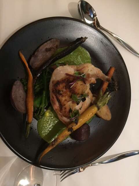 מנה ראשונה נוספת שניסיתי כללה מספר סוגי פטריות וקרעי לבבות ארטישוק, שמעליהן ביצה עלומה. השמפיניון ובנות דודתה למשפחת הפטריות נחתכו באופן גס, מה שאִפשר לנגוס בהן ולקבל את הטעמים השונים בכל ביס. מכל הטעמים בחך הכי התענגתי על תיבול הכמון. זה זרק אותי לאירועים משפחתיים כשאמא שלי מקפידה לבשל פול ולתבל אותו בכמון, טרי כזה, ארומטי, שמשחרר חסימות באף. עכשיו דמיינו את כל הצלחת הזאת כשהביצה העלומה נפרצת והחלמון החמים מתמזג עם הכמון. שלולית של רטיבות חמימה לוקחת את הפטריות ואת הארטישוק למקום רחוק אחר – מנה שהיא תענוג אמיתי.