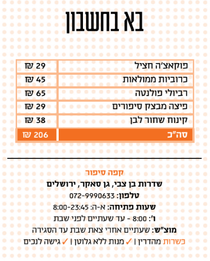 את "קפה סיפור" ליווינו מרגע הקמתו. כל שבת בגן סאקר ראינו איך הבנייה הולכת ומתקדמת. כשסוף־סוף הוא נפתח, לקח לנו חודשיים להגיע. כל שבת בארי היה שואל "מתי נאכל פה?" ויום אחד, אספתי אותו מהגן ואמרתי לו "מה בא לך לעשות היום?" והוא ענה חד־משמעית: "לאכול בגן סאקר".