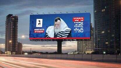 3.פרזנטור. הרב קנייבסקי מסתכל מלמעלה על נתיבי איילון וכביש בגין, לצד הסלוגן "ברכנו אבינו כולנו כאחד". באיחור אופייני, ג' מאמצת את אסטרטגיית ש"ס ארוכת השנים. לש"ס היה פרזנטור ידוע ומוכר: הרב עובדיה יוסף ז"ל. בשנים האחרונות, עם "התפרקות שלטון המרנים" בחברה החרדית, התבלטה דמותו הייחודית של הרב חיים קנייבסקי (91) מבני־ברק, אדמו"ר בגרסה ליטאית. חרדים, דתיים וגם מסורתיים מגיעים לביתו להתברך. דגל התורה, הפלג הליטאי של יהדות התורה, הוא שאחראי לגישה החדשה שמנסה לפרוץ את מתחם התמיכה במפלגה - באמצעות דמותו של הרב הישיש.