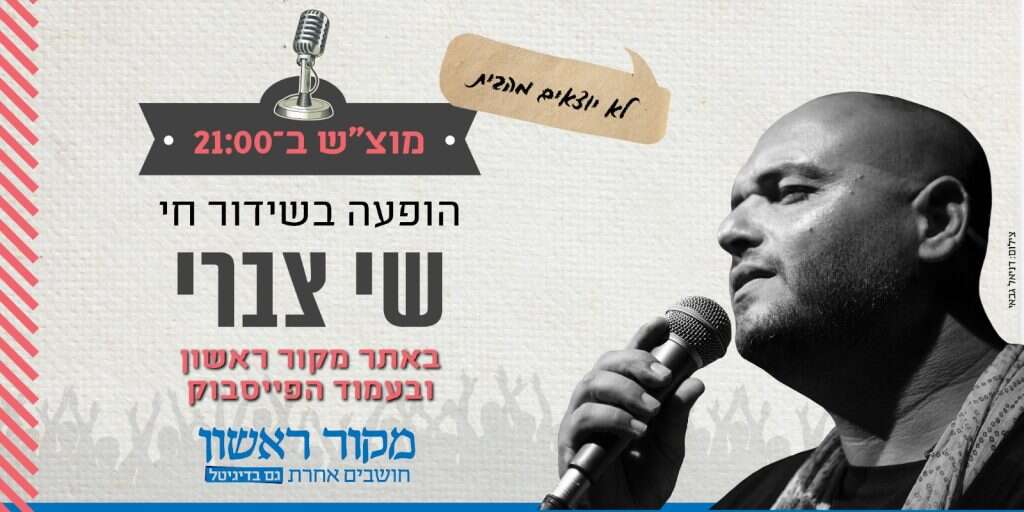 שי צברי בהופעה מיוחדת מהבית. ב-21:00 בשידור חי בעמוד הפייסבוק של מקור ראשון