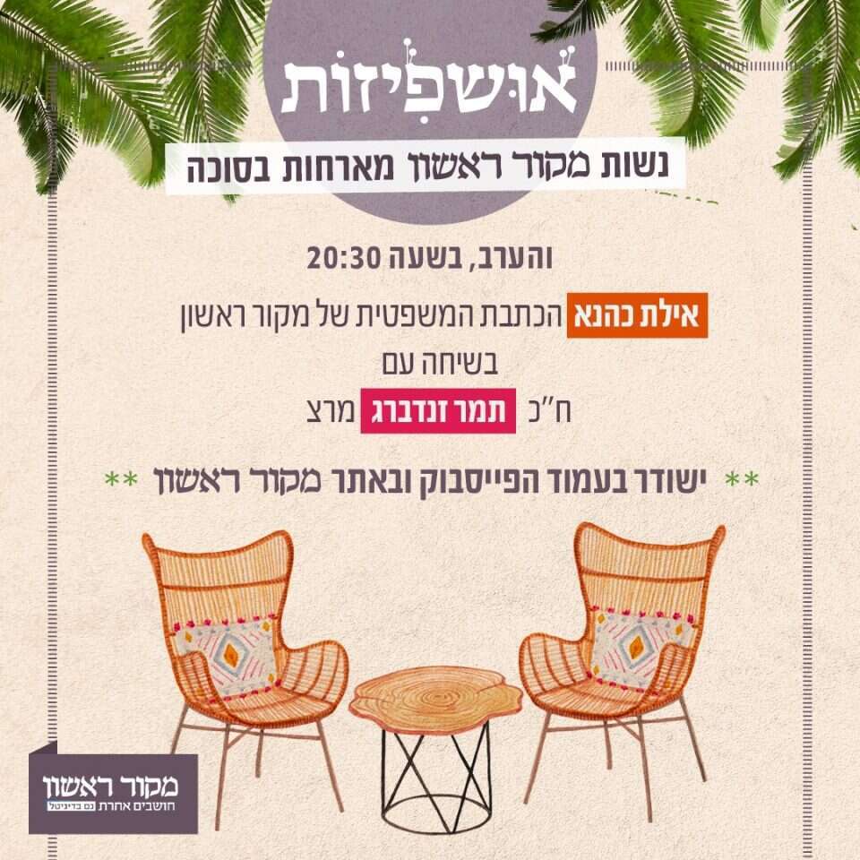 אושפיזום מיוחד לכבוד חג הסוכות. נשות מקור ראשון מארחות בסוכה דמות מרתקת לשיחה בארבע עיניים. שידור ישיר בעמוד הפייסבוק ובאתר מקור ראשון. חוה"מ סוכות - ראשון עד רביעי בשעה 20:30.