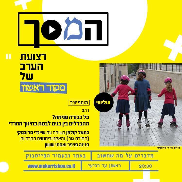 בתאל קולמן משוחחת עם שיינדי סדובסקי, המשתייכת לחסידות גור, ועם אסתי שושן ופנינה פויפר, אקטיביסטיות חרדיות, על ההבדלים בין בנים לבנות בחינוך המגזר החרדי.