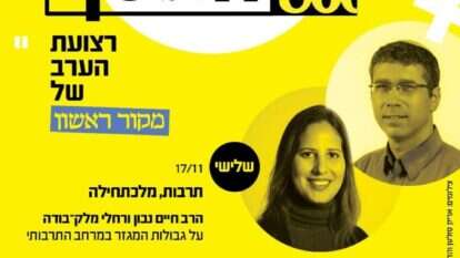 שניים מכותבי הטורים של מוצש, הרב חיים נבון ורחלי מלק-בודה, בשיחה על גבולות המגזר במרחב התרבותי.