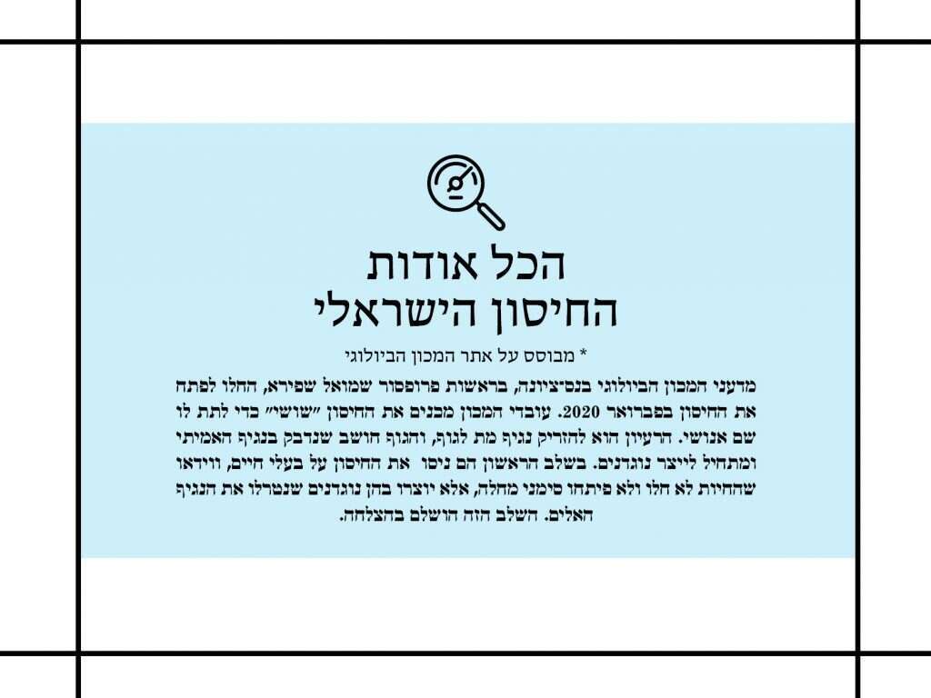 לפני חודשיים נחתה אצלי הודעה שמחפשים נבדקים לפיתוח החיסון הישראלי. מצד אחד הרגשתי שאני חייבת להשתתף בזה. אבל מצד שני, אני לא כזאת צדיקה ודי מפונקת, אז למה אני מוכנה לקפוץ ראש לתוך בריכה עם מים רדודים? אולי כי פתאום נפתחה הדלת ליציאה מהתקופה המטורללת הזאת, והיא ישראלית והיא שלנו מהבית. אז אני בפנים.