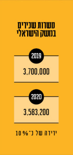 טום ניסים, בן 25, עבד גם הוא עד אמצע מרץ 2020 בשתי עבודות. "משרה חלקית באדמיניסטרציה שעמדתי לעזוב כי רציתי להתקדם מקצועית, ומשרה מלאה בשירות לקוחות של סטארט־אפ בתחום הסייבר, בשאיפה להתמקצע בתחום. בנוסף לקחתי קורס סייבר". באמצע מרץ, בגל החל"תים הראשון, סיים את התפקיד האדמיניסטרטיבי, ומהמשרה המלאה בסטארט־אפ הוצא לחל"ת. בסוף מאי חזר לגור אצל אמו, באזור אחר בארץ. במקביל, הסטארט־אפ הציע לו לחזור לעבודה, הפעם מהבית. "חזרתי ל־80 אחוזי משרה ובשכר נמוך יותר בלי לילות ובונוסים. ביוני 2020, יומיים אחרי שאושרו דמי האבטלה עד יוני 2021, התפטרתי. אני מקבל 3,600 שקל דמי אבטלה, כשהמשכורת בשירות הלקוחות הייתה בערך 1,000 שקל יותר.