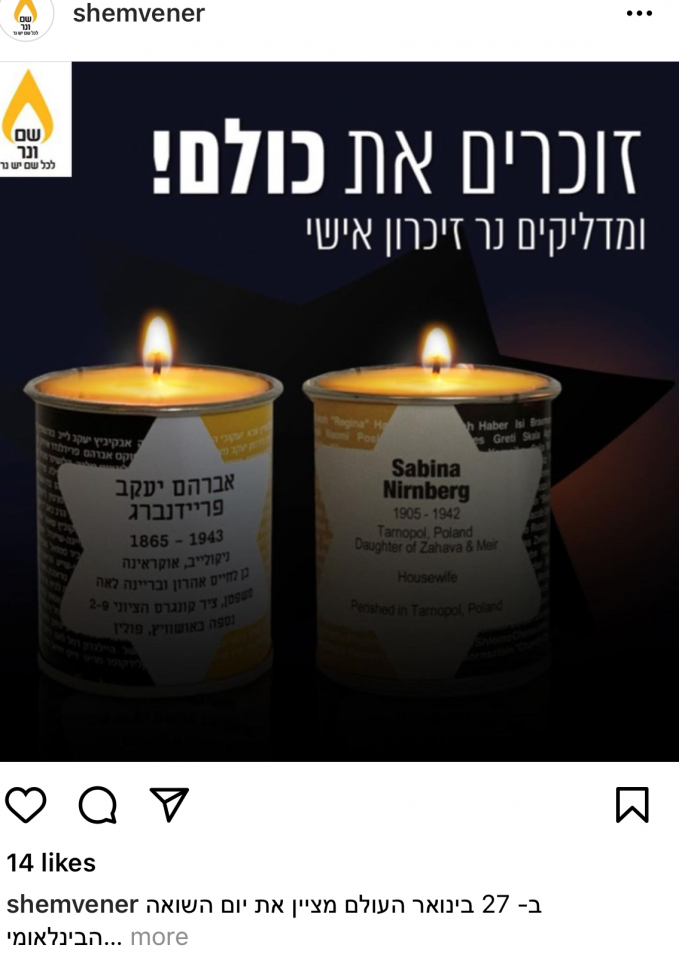 "הסטורי של אווה", שנוי במחלוקת ככל שהיה, העלה לדיון שאלה משמעותית: האם האינסטגרם הוא במה לגיטימית לעיסוק בשואה? שנתיים מאוחר יותר השאלה נראית כבר פחות רלוונטית, והתשובה ברורה יותר. גם ארגון "שם ונר" יישר קו, ופתח עמוד אינסטגרם משלו. הארגון מבקש לשמר את זיכרון השואה באמצעות הדלקת נרות זכרון אישיים, ומנסה להעביר את המסר שעל כולנו מוטלת האחריות לזכור ולא לשכוח, והדלקת נר היא מעשה קטן עם ערך מוסף גדול.