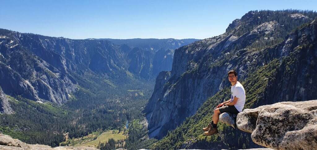 עלינו בכביש צר ומפותל, שבחלקו יש מעבר רק לכלי רכב אחד, ועברנו דרך הרים עמוסים בעצי אורן גדולים וצפופים. אחרי כארבע שעות נסיעה הגענו לכניסה ליוסמיטי. מרגע שנכנסנו לפארק ועד הרגע שיצאנו ממנו ארבעה ימים לאחר מכן, המראות פשוט תקפו לנו את העיניים. הטבע בפארק הוא לא רק יפה - הוא מרהיב, אפילו אלים. המפלים התלויים, ההרים האין סופיים הצבועים בסגול, אפור וירוק משגעים את העין. כשעלינו על אחת הפסגות בפארק באחד הימים לא הצלחנו להבדיל מתי מתחיל עמק ומתי מתחיל הר ומתי ואיפה הם נגמרים ולאן הם פונים. יוסמיטי מעניק תחושה של גדול עלינו. העולם עצמו, היכולת לתפוס משהו בחושים אנושיים נראית כל כך עלובה כשעומדים על הפסגה שם.