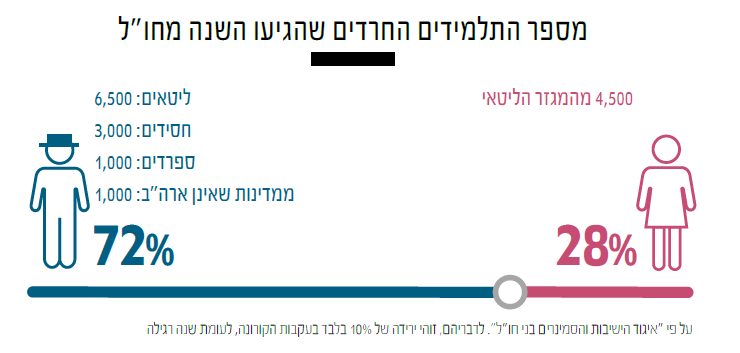 מספר התלמידים החרדים שהגיעו השנה מחו"לעל פי "איגוד הישיבות והסמינרים בני חו"ל". לדבריהם, זוהי ירידה של 10% בלבד בעקבות הקורונה, לעומת שנה רגילה