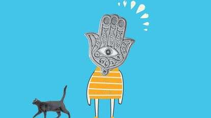 הם לא ממש האמינו בסגולה שמאחורי הקישוט הפופולרי, וגם לא נחרדו ממנו במיוחד. הוא היה שם בבית כמו עוד סמל כאילו יהודי. מקשט את הבית כמו ציורי מנורה, כמו פיסול רימונים מייצרי אווירה לא מזיקים. אבל הרב אמר, ואבא הקשיב, ואת העבודה הזרה הזו הוא החליט להוציא מהבית. כי אצלנו מאמינים בא־לוהים, לא בחפצים. ומי, למען השם, משאיר אמונה טפלה ככה על הקיר. ואם מישהו הלביש עליהם יכולות מיסטיות, אז אנחנו יוצאים מהמשחק. את הקיר ההוא צבעו מחדש, את הנשמה שלנו מילאו באמונת חכמים ורוקנו מאמונת חפצים. ועד היום אני מוותרת על צמידים יפהפיים עטורי חמסות ודגים. נאנחת מול חרוזי טורקיז, ואומרת לא תודה. אני לובשת קישוטים ניטרליים, כאלה שאין להם אלוהים אחרים.