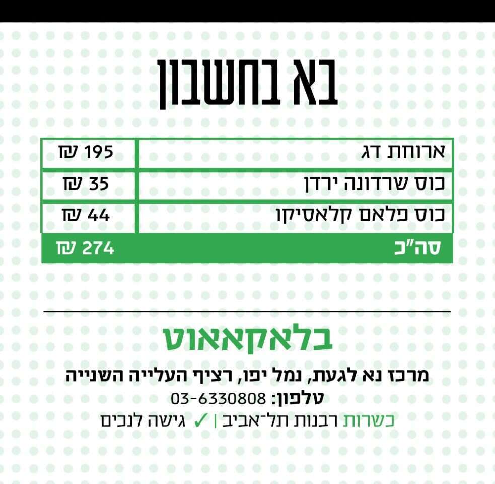 אין ספק שהארוחה בבלאקאאוט היא חוויה מרתקת ומעוררת מחשבה. מצד אחד חשנו מוגבלים, עצורים, כלואים בתוך עולם חסר ומלחיץ. מצד שני - במה שכן הצלחנו לגעת, נגענו במלוא מובן המילה: הטעמים היו חיים יותר, הצלילים עזים וגם האדם שישב מולנו התרכז כל־כולו בנו. כי כשלא רואים כלום, פתאום רואים כל כך הרבה.