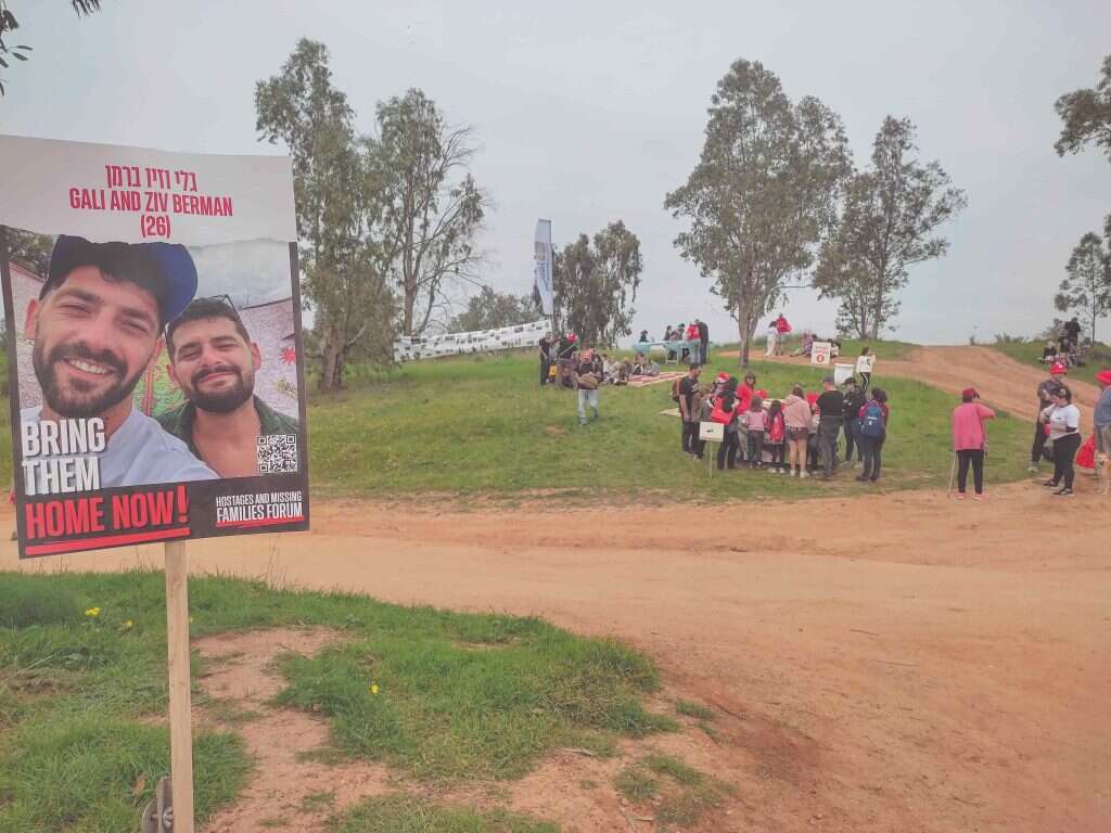 מנקודת ההזנקה לאורך המסלול כולו תלויות תמונות החטופים, והחיים שנעצרו באכזריות עומדים בניגוד קורע לב ליופי המתפרץ של הטבע