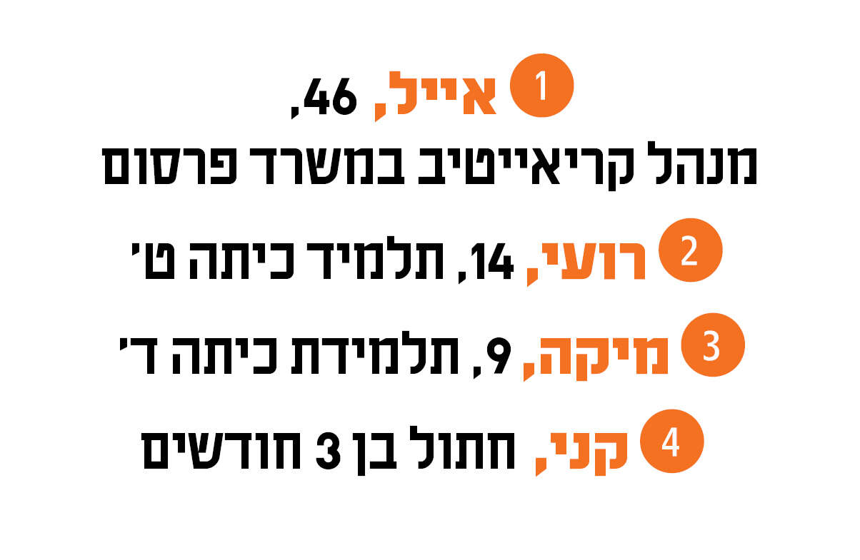 הבוקר // בשש הוא כבר על הרגליים, שותה קפה וגולל באייפון - עובר על האתרים ומתעדכן. "היו לי לאורך השנים כמה ניסיונות לעשות מדיטציה, שלא החזיקו. אבל הרצון לשלב את זה בשגרה עוד קיים. יום אחד אולי זה יקרה". אחרי שהילדים הולכים לבית הספר אייל יוצא לעבודה – הוא נוסע לרמת החייל, שם ממוקם משרד הפרסום שהוא עובד בו כבר כמה שנים. במהלך הנסיעה הוא נהנה להאזין למוזיקה או לפודקאסטים קצרים, שמוסיפים לו השראה לפני יום העבודה.