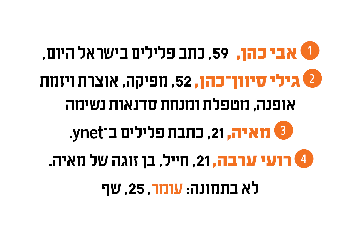 הבוקר // אבי משכים קום בשש וחצי בבוקר, ומתעדכן בחדשות המקומיות והבינלאומיות (לא פעם הוא מתעורר עוד לפני כן, באמצע הלילה, כדי לבדוק עדכון חדשותי או הודעה ששלחו לו). גילי קמה בערך באותה השעה, פותחת את היום ב"מודה אני", עושה מתיחות ותרגילי נשימה ויוצאת להליכה לאורך החוף או בפארק. מאז תקופת הקורונה היא לא פותחת את היום בחדשות. "אני האנטיתזה של אבי. אני קמה, נושמת, יוצאת להליכה ומקפידה על עשרת אלפים צעדים ביום. זה יעד שהצבתי לעצמי ואני משתדלת לעמוד בו כמעט בכל יום".