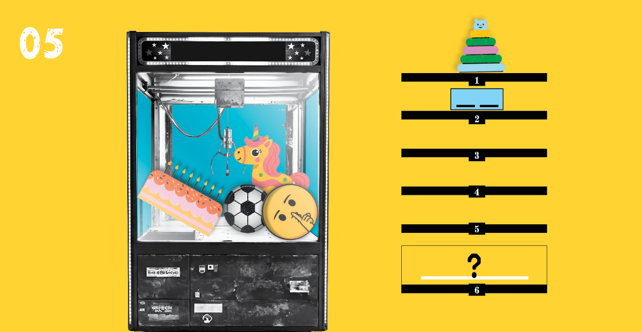הכרוז סימן למישהו בצד הבמה, ועד מהרה הונח לידו ארגז עמוס קופסאות, חפצים צבעוניים וגזירי נייר. "זה המבחן שיקבע מי יזכה באוסף הנדיר. בהצלחה!"
