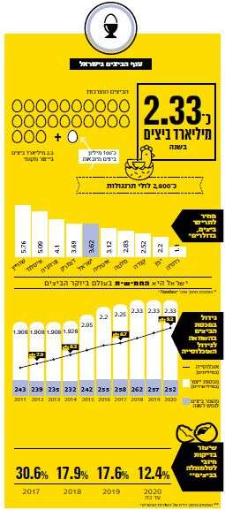 המחסור בביצים שראינו בפסח היה כנראה רק הקדימון למחסור הצפוי לנו בראש השנה. זאת בעקבות החלטתה השבוע של ועדת הכלכלה, להותיר על כנה את מכסת הביצים שאושרה ב־2018. בישראל ייוצרו השנה 2.33 מיליארד ביצים, כמו בשנה שעברה וכמו בשנה שלפניה. וכיוון שהאוכלוסייה בישראל גדלה בכל שנה בכשני אחוזים, המשמעות ברורה: לא יהיו השנה מספיק ביצים בהתאם לצרכיו של העם היושב בציון.