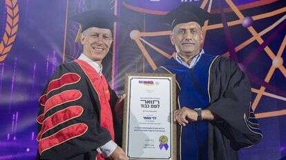 רביב חיים, אביו של יותם ז"ל, הגיע לבמה לקבל את התואר בשם אשתו. "כאזרחית המדינה, כתושבת הדרום ומועצה אזורית אשכול בפרט וכאם לבני יותם שנחטף בשבעה באוקטובר מכפר עזה הקיבוץ שנמצא בשכנות אליכם, אני גאה לקבל מכם תואר לשם כבוד. מי ייתן ובוגרי המכללה ימצאו דרך לחיזוק חוסנה של החברה הישראלית תוך שילוב כוח האמונה והתקווה", ציינה איריס חיים בסיום הטקס.