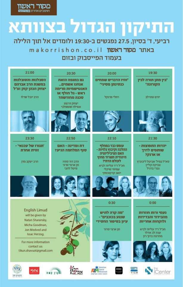הערב נולד משיתוף פעולה בין "הבמה לשיח ישראלי-יהודי בצוותא” לבין פעילות "ארגון רבני צהר" בחגים, מתוך סקרנות להכיר את אוצרות המקורות היהודיים ואת מגוון הקולות, ומתוך רצון להיפגש וללמוד ביחד. התיקון הגדול בצוותא הוא במה המאפשרת לכל אחת ואחד לבוא ללמוד וללמד, לשמוע ולהשמיע.