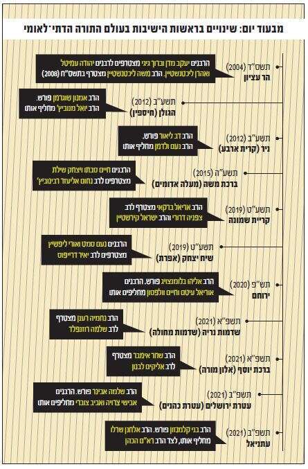חשוב להדגיש: הישיבות המדוברות לא סבלו מקשיים או מירידה במספר התלמידים, שהובילו את ראשי המוסד למסקנה שיש צורך בשינוי. בחלק מהמקרים החשש אף היה הפוך, שעזיבת ראש הישיבה הוותיק והמוכר היא שתוביל לפגיעה. בחרנו גם שלא לכלול ברשימה ישיבות שגם כך הייתה בהן תחלופה רבה בעמדת ראש הישיבה, אלא לעסוק רק במקרים שבהם ראשי ישיבה מובהקים, שעמדו בראש מוסד עשרות שנים ולרוב גם ייסדו אותו, והיו יכולים להמשיך כרגיל בתפקידם – מינו במקומם, ולעיתים לצידם, ראש ישיבה חדש.