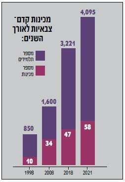 ככלל, המכינות הקדם־צבאיות מצויות במגמה קבועה של פריחה והתרחבות: בשנת 1998 היו בארץ עשר מכינות בלבד, ב־2008 המספר שילש את עצמו ל־34 מכינות, וב־2018 כבר היו פרושות ברחבי הארץ 47 מכינות. נכון להיום רשומות 58 מכינות במועצת המכינות, ואם סופרים את כל השלוחות של המכינות, כבר מגיעים ל־84 קמפוסים. החלוקה הפורמלית מבדילה בין "מכינות תורניות", כלומר מכינות דתיות, ו"מכינות כלליות" – מונח שבו נכללות המכינות החילוניות והמעורבות גם יחד. בעוד שבמכינות התורניות הדגש הוא על לימוד תורה וטיפוח זהות דתית, במכינות הכלליות מתמקדים בהגות יהודית־ישראלית, ידיעת הארץ ופעילות התנדבותית.