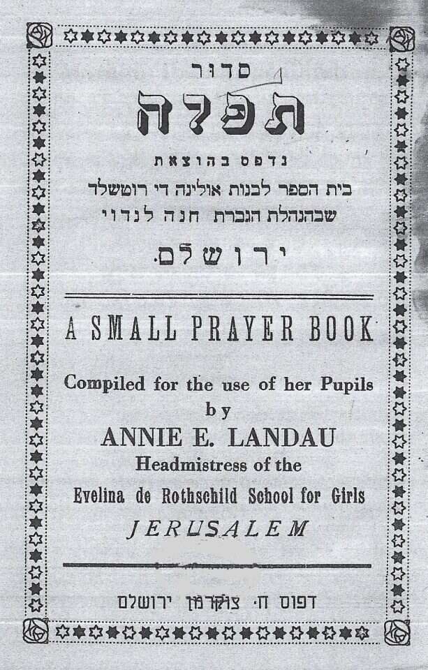 סידור מעניין ולא ידוע ברבים הוא הסידור שערכה לצורך תלמידותיה מיס לנדאו, אותה גבירה לונדונית שמרנית שעמדה שנים רבות בראש בית הספר לבנות אוולינה דה־רוטשילד בירושלים. תחילה הכיל הסידור רק את תפילת שחרית לחול ולראש חודש, ובכלל זה קריאות התורה המתאימות, אך במהדורתו השנייה נוספו יחידות חדשות ובהן שורת פסוקי שמות מן המקרא המותאמים לבנות (ורק להן), ומאידך הושמטו קריאות התורה, שהרי מה למניין שכולו נערות ולקריאת התורה בציבור? שער הסידור נכתב בעברית ובאנגלית ונוסחו היה נוסח אשכנז, שכן בנוסח זה נהגה הגברת להתפלל, בעוד רובן הגדול של תלמידותיה נמנו על העדה הספרדית. מכל מקום, עצם הופעתו של סידור חינוכי המותאם דווקא לבנות ראויה לציון ולעיון.