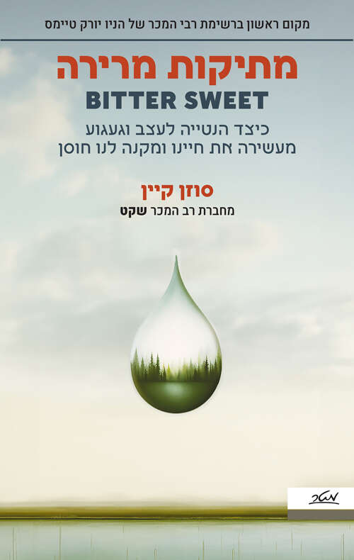 העולם משתחרר בהדרגה מתבניותיו. אחת הנציגות החביבות עלי בז'אנר היא סוזן קיין. בספרה הקודם, "שקט", היא הבדילה בין אנשים שקטים למופנמים, ונתנה מקום של כבוד לאנשים שלא רוצים להצטרף למסיבה. כמו בקודמו, גם ב"מתיקות מרירה" יש שאלון לאבחון עצמי ואנקדוטות חביבות. הפעם במרכז: הקשר בין רגשות כמו עצב וכמיהה לתכונות כמו חמלה ויצירתיות. קיין מוצאת יתרונות רבים ברגשות שנחשבים רשמית על הסקאלה השלילית, או לפחות הלא שימושית. הזרקור נעים לקריאה, בטח למי שמזדהה עם האישיות המתוארת בספר, אבל לא רק.