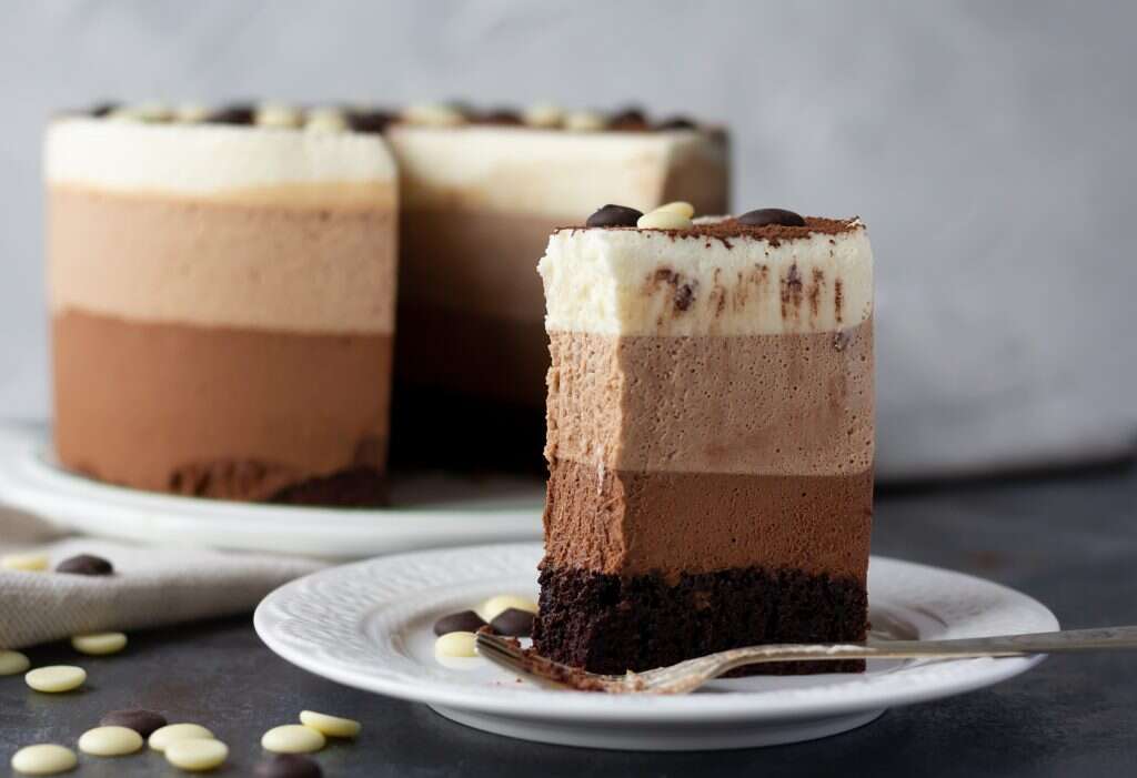 יוצקים את מוס המוקה מעל שכבת מוס השוקולד מריר, משטחים ומחזירים למקפיא לשעתיים התייצבות.